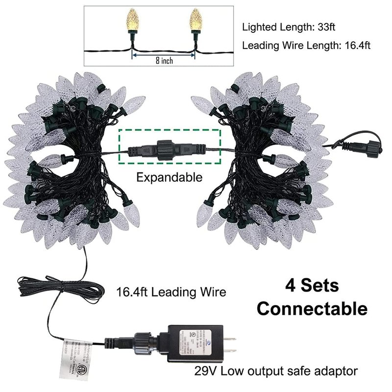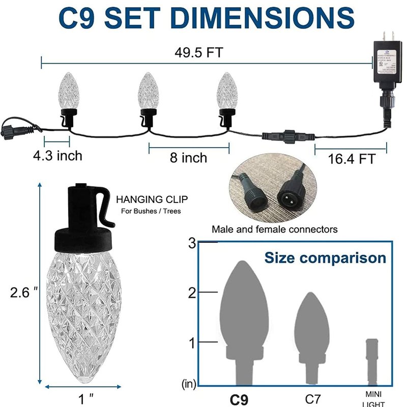 - Perfect for Decor: The C9 Christmas lights are ideal for decorating Christmas trees, gardens, yards, homes, patios, bedrooms, weddings, and thanksgiving celebrations.