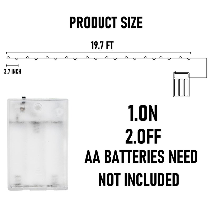 - Size: Dazzle Bright fairy lights comes with 60 LED bulbs. Bright lights exude a 360 degrees charming light, add a festival glow to your home. The fairy lights is 20 ft, bulb spacing is 3.7 inch.