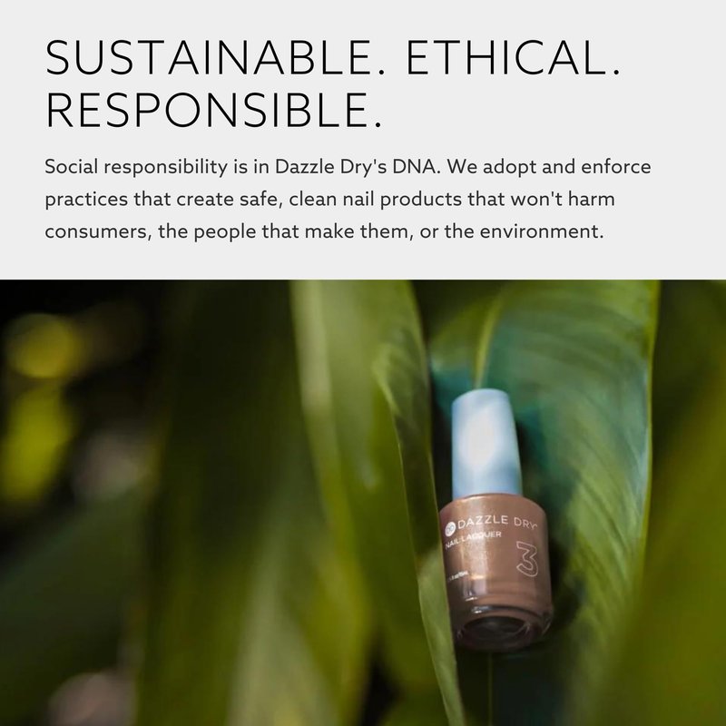 This is the blueprint for better nails. Dazzle Dry is the only system of its kind delivering the high performance of a gel polish without the use of harsh chemicals, UV light, or damage to the natural nail; all while protecting and strengthening the nail over time. All of the products in the Dazzle Dry nail system are made without harmful ingredients that are commonly found in nail products such as Formaldehyde, Camphor, Sulfuric Acid, Parabens and SLS.