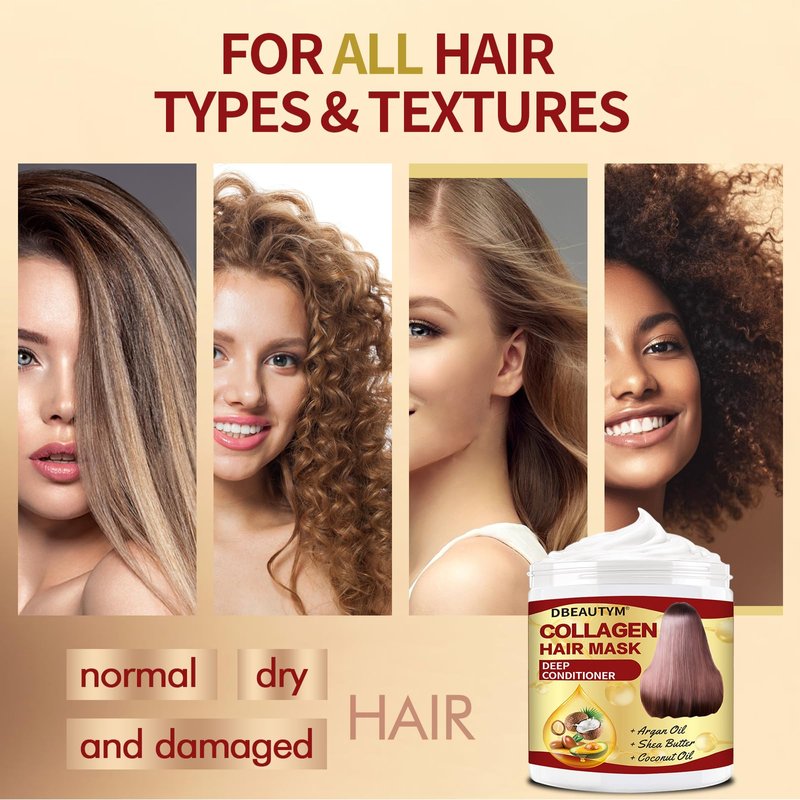DBEAUTYM Collagen Hair Treatment Mask - Natural Deep Conditioner, Hydrating Essence for All Hair Types, Including Dry and Damaged