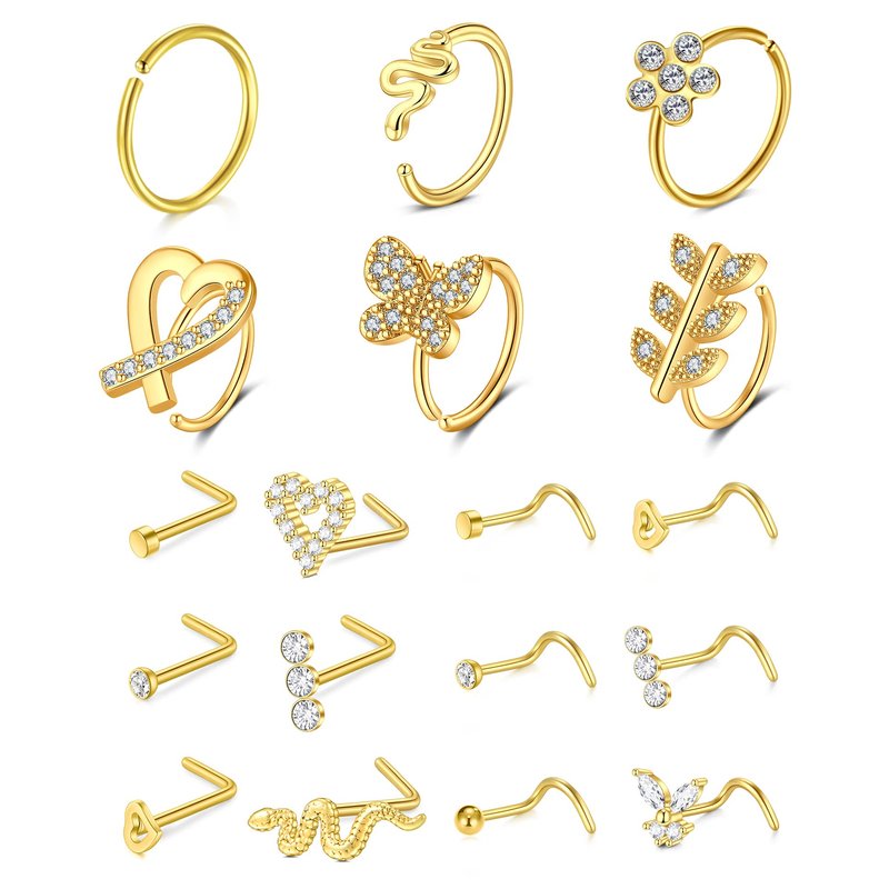 D.Bella Surgical Steel Nose Ring Gold 20G Rings Hoops Studs for Women Men Piercings 20 Gauge Piercing jewelry
