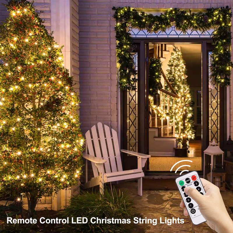 - Remote Control & 8 Modes: The outdoor battery operated Christmas string lights with remote control to modify 8 lighting patterns, set the timer and adjust brightness as well as turn them on and off, simply press the button on the battery box to select 8 lighting setting from combination, in wave, sequential, slo glo, chasing/flash, slow fade, twinkle/flash to steady on.