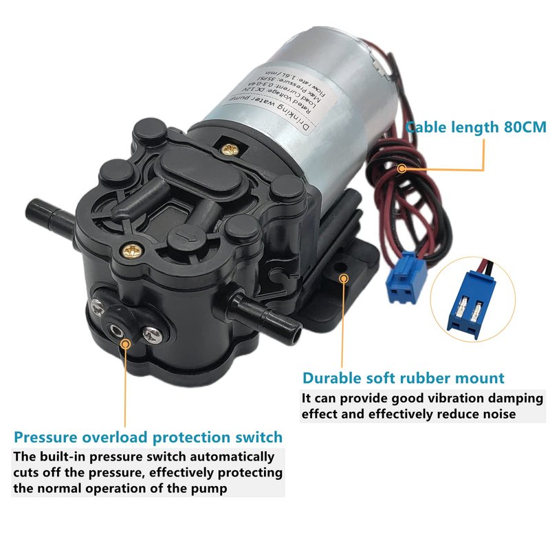 - Easy to replace and install, stable performance. Suitable for under-mounted water dispenser parts replacement, coolers, drinking water projects, he would be a good replacement pump.