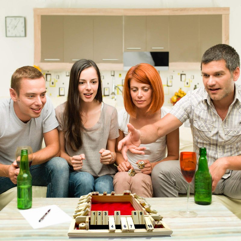 - Wooden Shut The Box Board Game: you will get the board game with 2 dices, 4 sided dice game with 10 flip number cards, excellent party must for Christmas, birthday, picnic, etc.