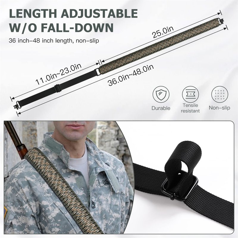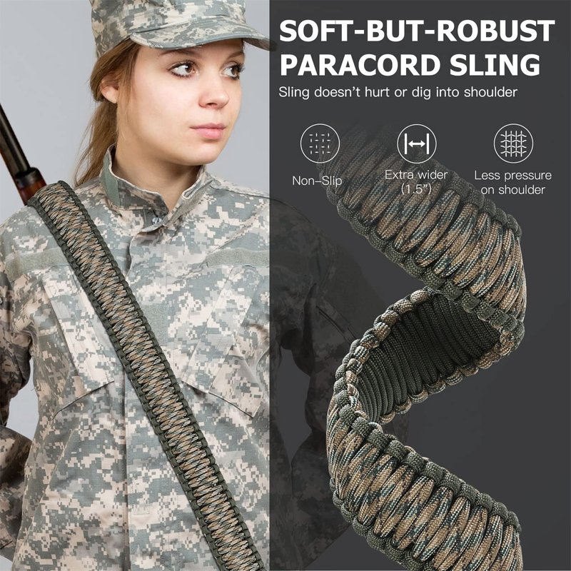 - 1.5 inch extra wide design paracord sling, will not hurt or dig into the shoulder, comfortable for long time use.