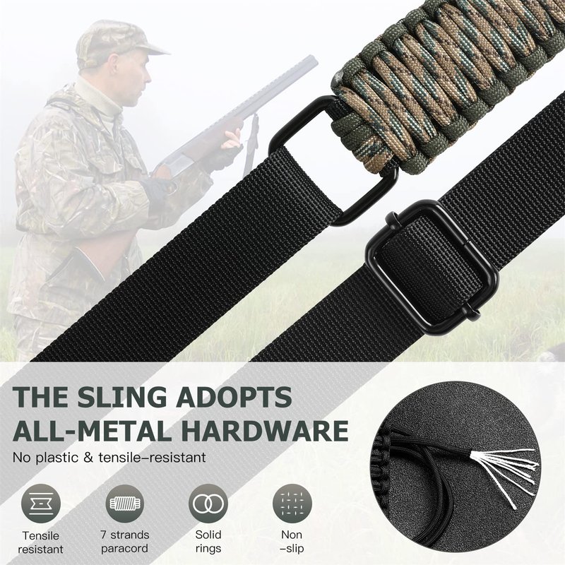 DDOUT Paracord Rifle Sling with Swivels, Two-Point Sling Quick Adjustable Length Strap for Hunting/Crossbow Sling