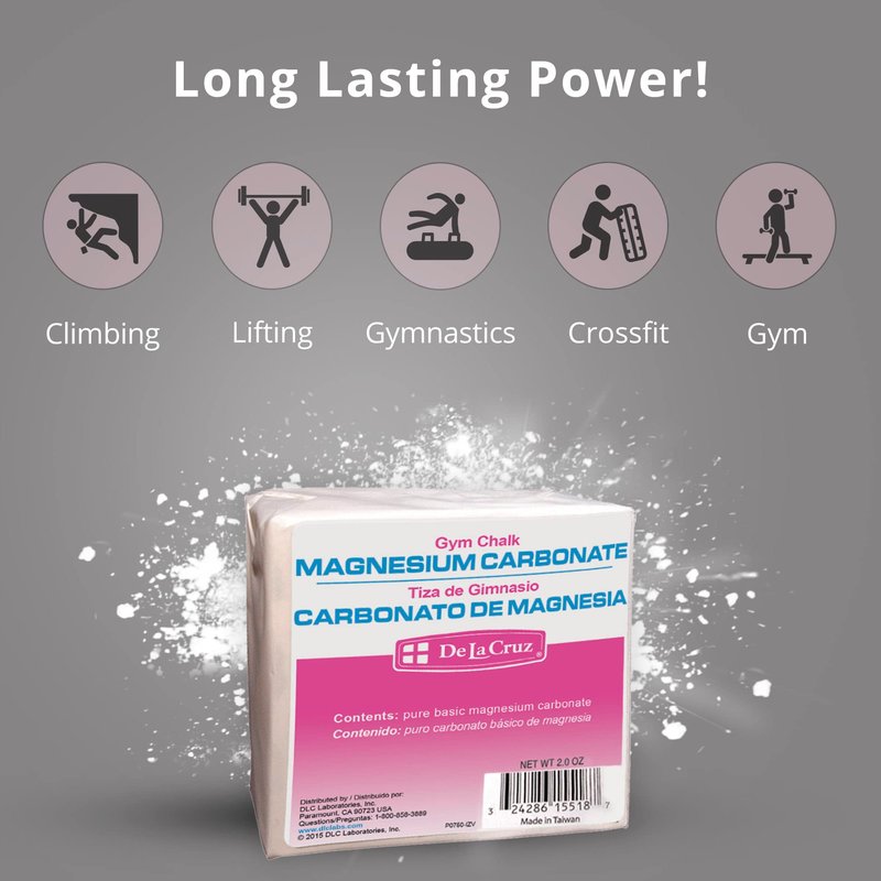 Weight Lifting ChalkMagnesium Carbonate Gym Chalk This athletic chalk is a great addition to any weight room, gym, crossfit studio or billiard room to improve your grip.. It is part of the essential kit for any adventurous rock climber! Absorbs moisture FAST optimizing your grip for a safe and effective workout Magnesium Carbonate Gym Chalk Uses:Rock ClimbingWeight LiftingGymnastics FitnessBilliard A little goes a long way! Add a bit of gym chalk powder to your hands for fast action drying and ultimate grip and stability
