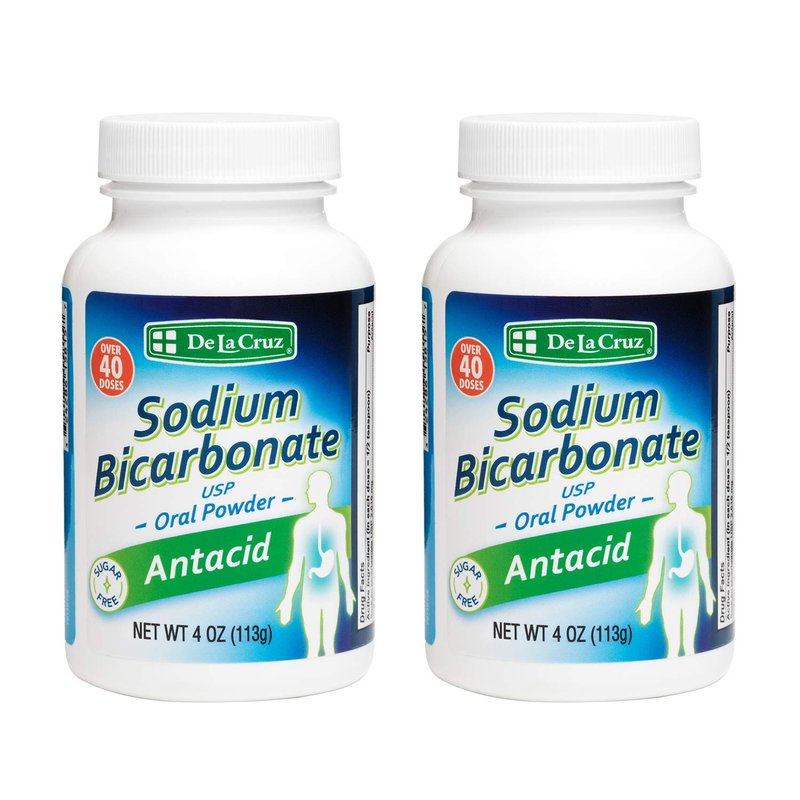 De La Cruz Pure Sodium Bicarbonate - USP Grade Bicarbonate of Soda – 100% Pure Baking Soda – Aluminum Free Antacid Powder for Heartburn & Indigestion - Packed in USA, 4 OZ. (2 Bottles)