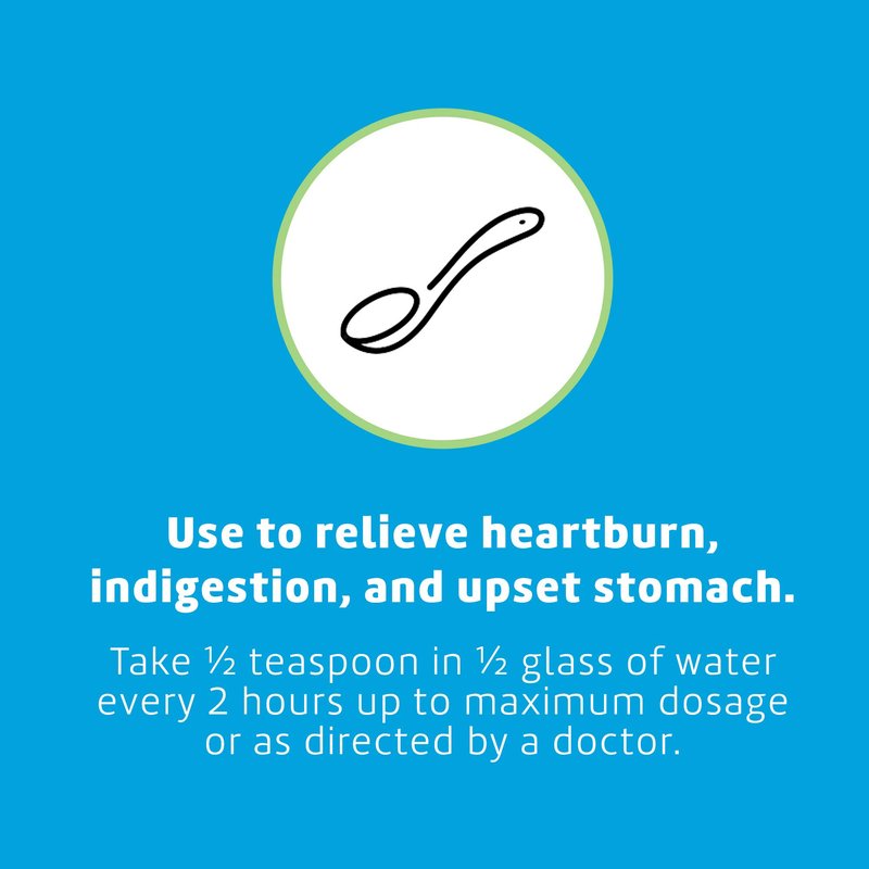 - EASY TO TAKE: The bicarbonate of soda antacid powder dissolves easily in water. Mix ½ teaspoon of premium baking soda with a glass of water, or try it with juice or homemade lemonade.