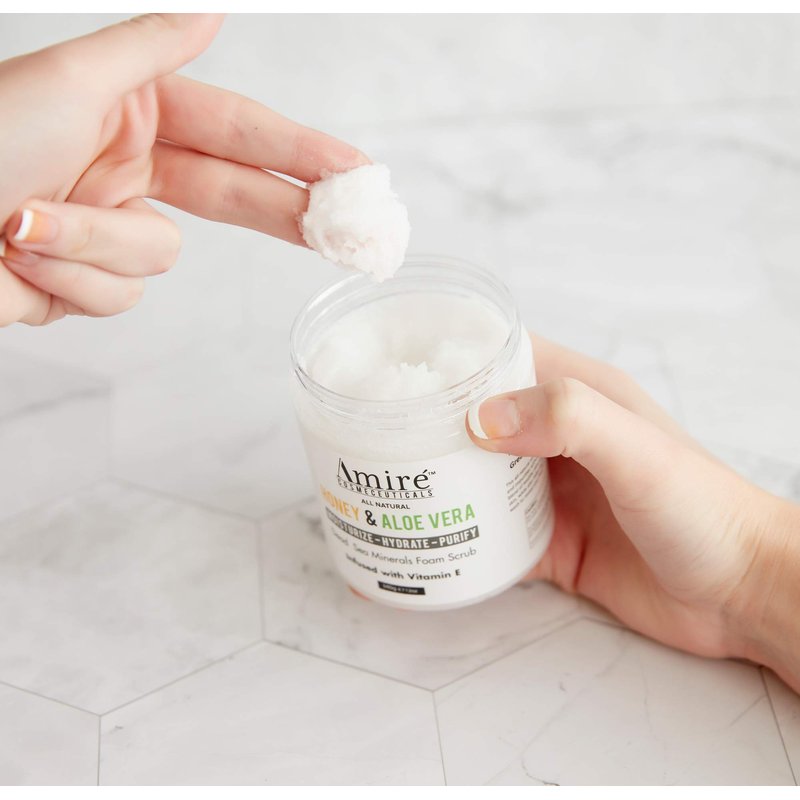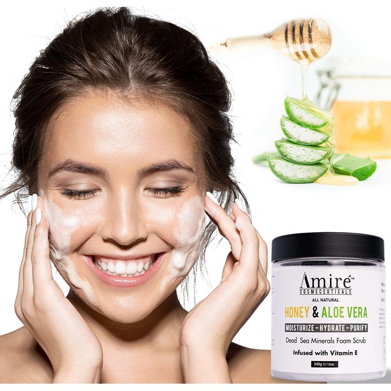 This face exfoliator scrub uses the combined powers of pure Dead Sea Minerals, Aloe Vera, Honey, and Vitamin E to keep your skin moisturized and hydrated throughout the day. Amire exfoliating and moisturizing body scrub provides you with spa quality care in the comfort of your home.