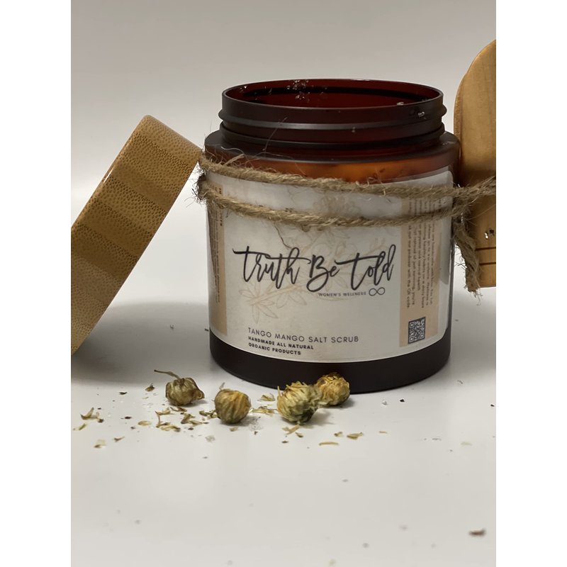 Natural Dead Sea salt combined with organic oils create our Salt scrub that gently buffs dry skin while delivering 24-hour moisture. All scrubs are handmade with essential oils. Exfoliate and detox skin, while precious oils nourish. Not to mention the scent is everything! If you love citrusy scents this one is for you! Especially light, great for spring and summer. Long-lasting citrus scent with a floral base note that brings it all together. Here's to a fresh scent mixed with Brazilian mango and grapefruit.