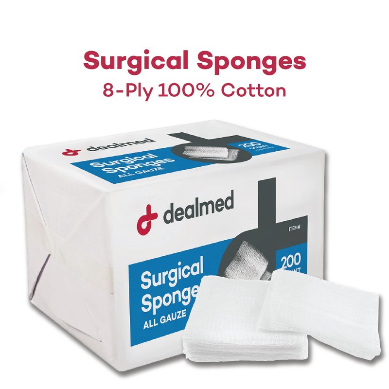 - Versatile Wound Dressing: The Dealmed Surgical Sponges are designed for dressing open wounds, prepping, cleaning, and more. The surgical gauze sponges are non-sterile for a wide range of dressing, cleaning, and procedure prep and can be cut to any size. They are designed for wound protection. The Surgical Sponges are non-sterile.