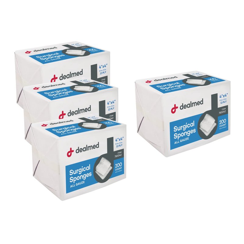 - Quick and Easy Access: Dealmed first aid gauze sponges are conveniently packaged in 200 count sleeves. For quick and easy use, simply pull down one end for access. With multiple sizes available, no wound is ever left unattended. The packaged sleeves are convenient for aseptic handling and easy access.