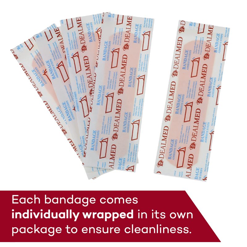 - Dealmed Fabric Flexible Adhesive Bandages – 100 Count (1 Pack) Bandages with Non-Stick Pad, Latex Free, Wound Care for First Aid Kit, 3" x 3/4"