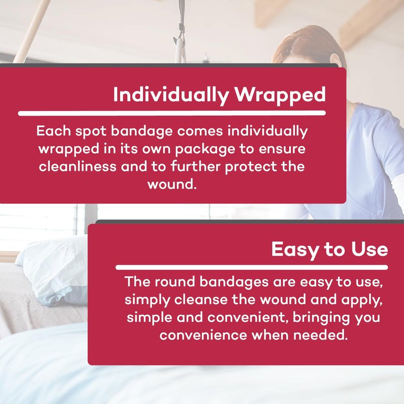 - Individually Wrapped Bandages: Each spot bandage comes individually wrapped in its own package to ensure cleanliness and to further protect the wound. They are specifically designed to cushion & protect small wounds while they heal.