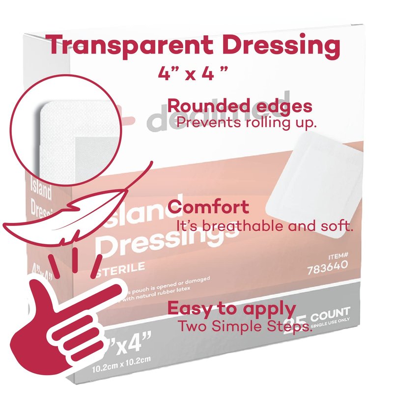 - Sterile Dressings: The Dealmed Island Dressings make wound care completely hassle free and easy to do, much more so than regular gauze and tape. The adhesive borders help it to stay in place, absorb leakages, and protect the affected area.