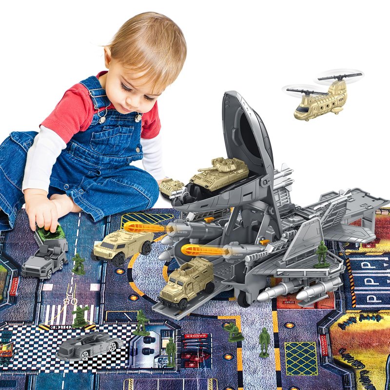 deAO Military Airplane Toys for Boys,Army Toys Fighter Jet with 8 Vehicles,10 Soldier Amry Men,19PCS Airplane Tanks Toys,Great Military Toys Gift for 3 4 5 6 Boys Girls Kids