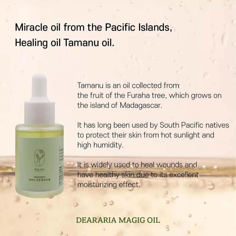 Dear Aria Hypoallergenic and Sensitive Tamanu Soothing Oil, All Skin Oil, Sitz Bath Oil, Massage Oil, 1.05OZ, paraben-Free, Korean Skin Care