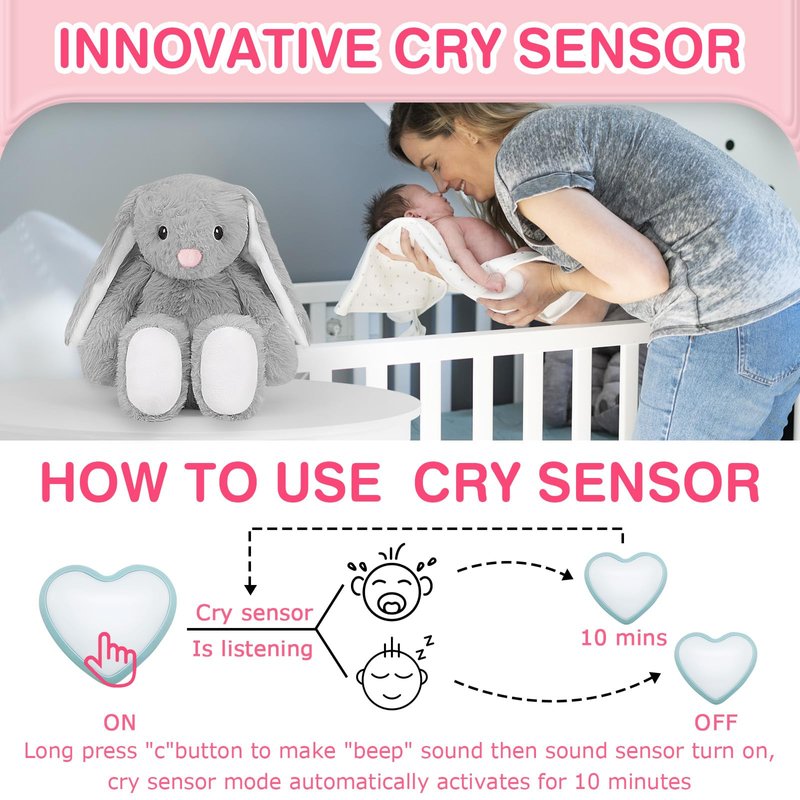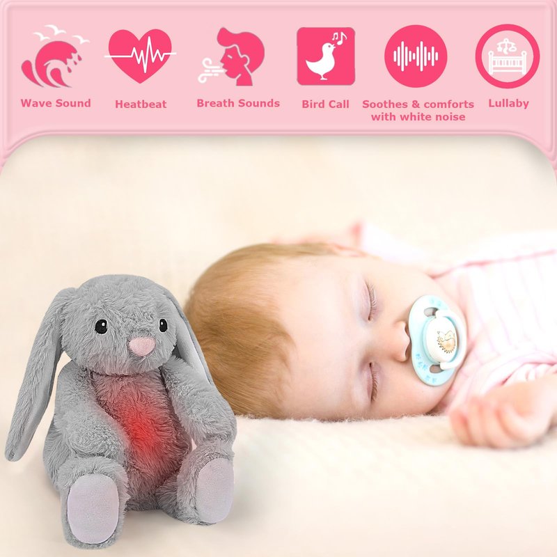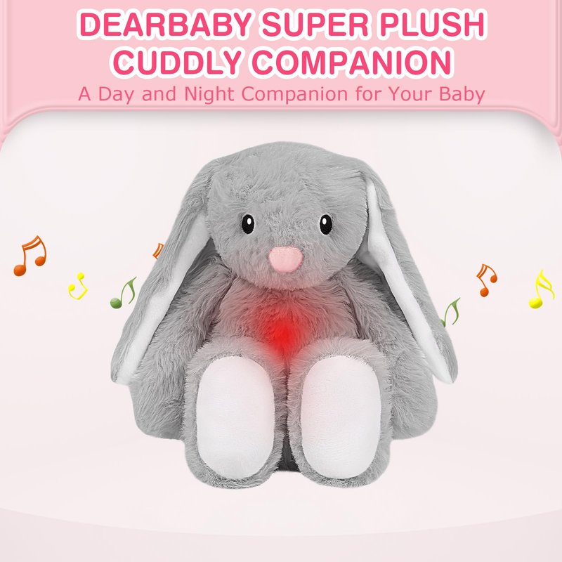 DEARBABY Baby Soother Cry Activated Sensor Toys,Heartbeat Bunny for Babies,Plush Stuffed Animal for Newborn Infants,Baby Toy Vibrating with Mom’s Heartbeat, for Girls and Boys