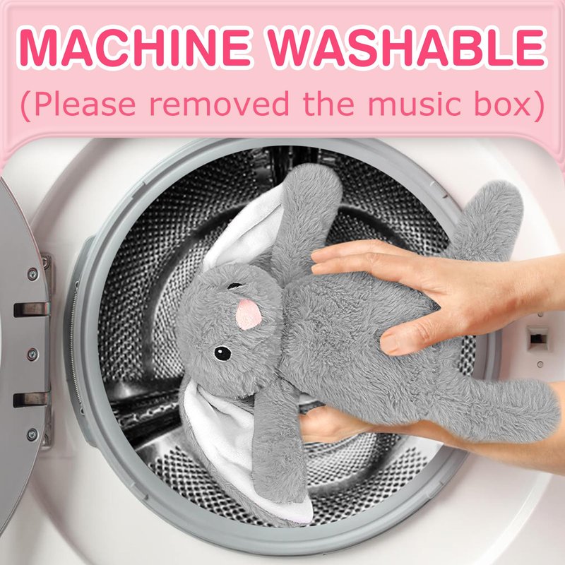 - 【Soft Night Light & Velcro strap attached】Increase your baby's comfort and safety. There are 4 colors of red, green,blue,yellow, which can be adjusted according to the color your baby likes. Or automatic rotation option: Press this button 5 times to cycle through 4 colors of light. Sweet magic Velcro strap design on the back of the rabbit plush, perfect for car rides, walks in the stroller ,baby bed & baby shower. Always be with your baby.