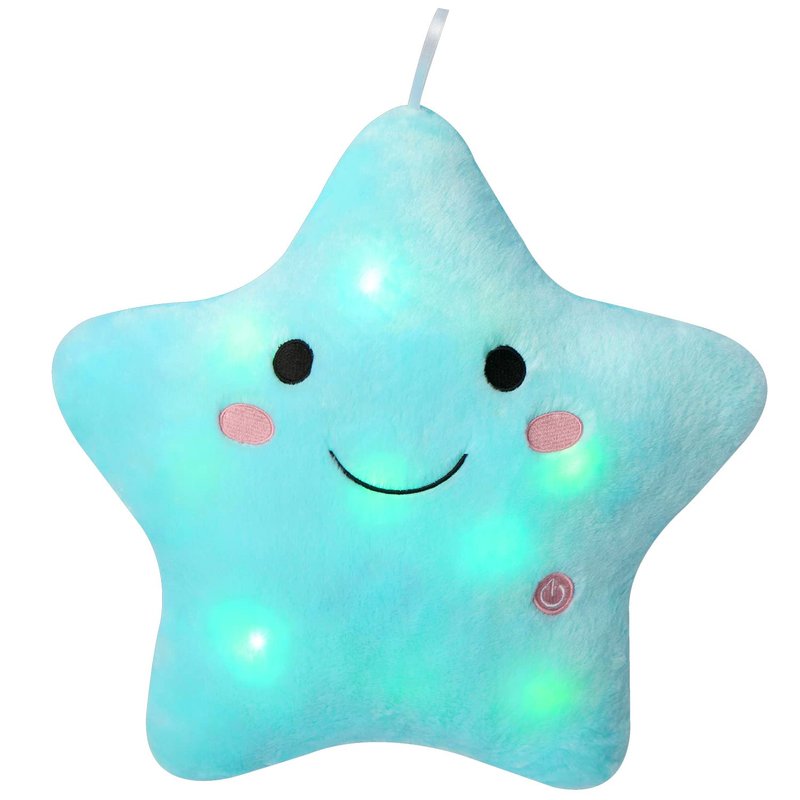 - This is a good plush pillow to show your kids that what is a star and how to shine. Turn on the press on Star and the light will turn off in 15 minutes automatically.