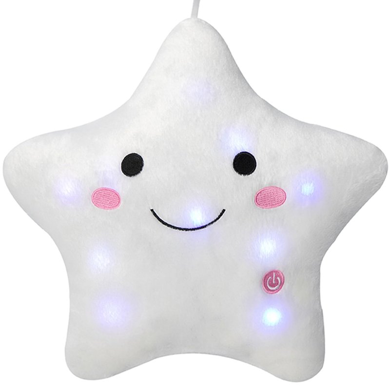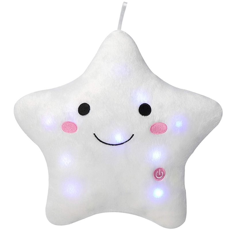 DearSun 13''Creative Twinkle Star Colorful Night Light Plush Pillows Light up Night Stuffed Toys Perfect for Birthday Christmas Holiday Valentines (White)