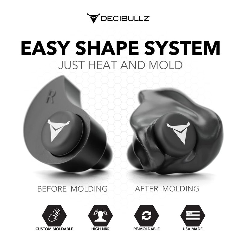 • EASY SHAPE SYSTEM: Simply heat the Decibullz thermoplastic molds in boiling water, let them cool for a bit, and shape them to your ears. That's it, and If you don't get the perfect fit the first time Decibullz are the only custom earplugs that are re-moldable.