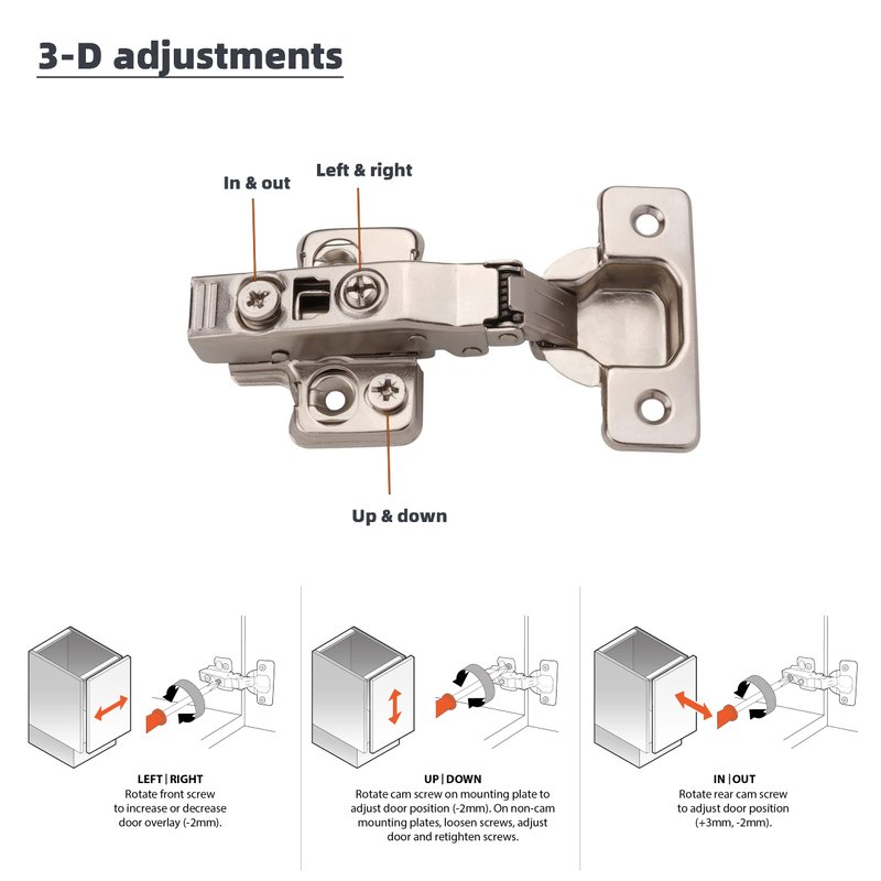DecoBasics Kitchen Cabinet Frameless Hinges (Pack of 2), Soft Close Door Hinges, Metal Hinges For Kitchen Drawers, Cabinet Hardware, 3 Way Adjustability & Easy Installation