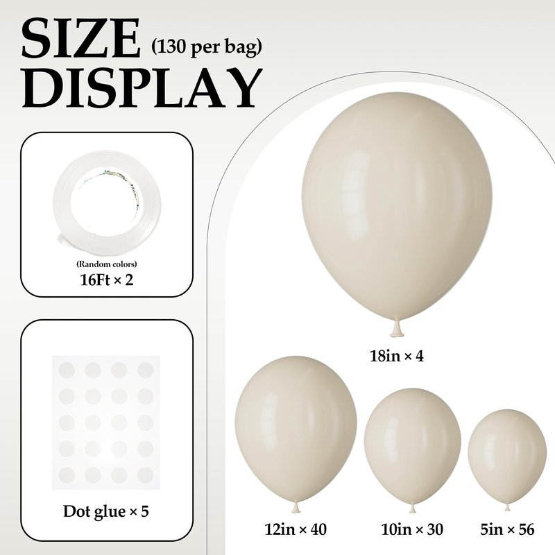 - 【Complete Party Decor】Make your party pop with our sand white balloons kit that includes 130 high-quality latex balloons and all the necessary accessories for quick and easy decorating. With different balloon sizes and glue dots, you can create a variety of decorative styles for any occasion.