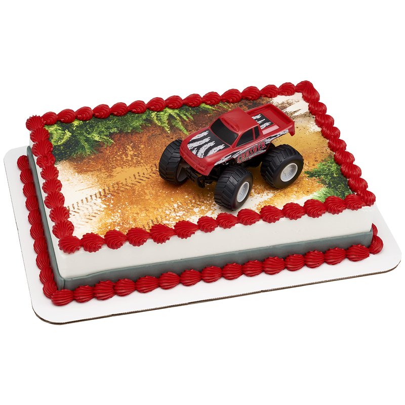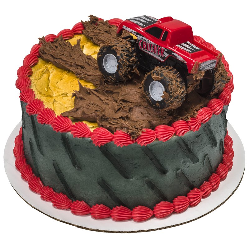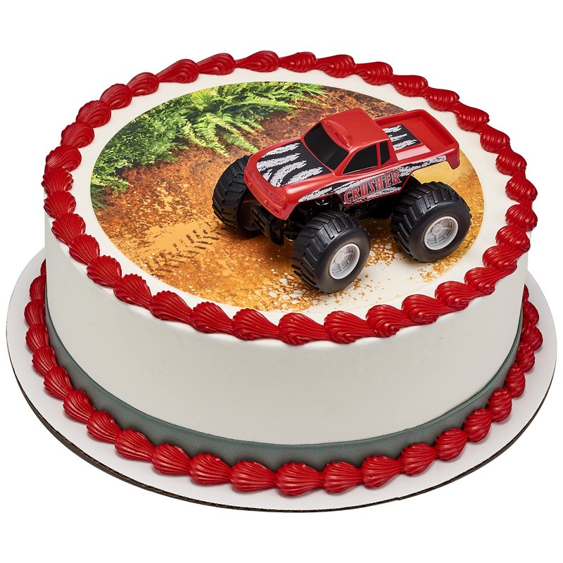 - Includes Crusher Monster Truck with sticker details and a clear barrier to protect icing.