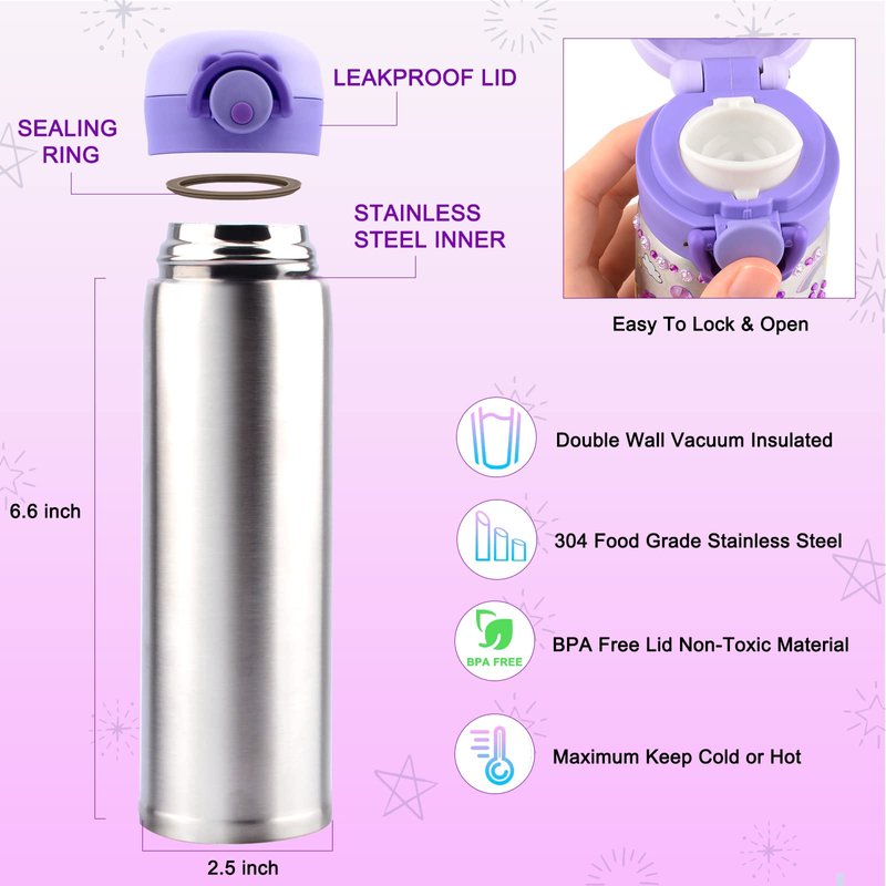 - 🎀【LEAK-PROOF FUNCTION AND UPGRADED DESIGN 】🦄Crafts for girls ages 4-8 are adopted for upgrade design which has a rubber ring tucked on the lid to prevent the water from leaking. The cap is also carefully designed with a purple button, which will open when you press the bottle mouth gently. The most important thing is that the size of the bottle mouth is in line with the mouth size of a 4 5 6 7 8 9 10 11 12-year-old girl. (Note: The bottle is recommended to be washed by hand.)