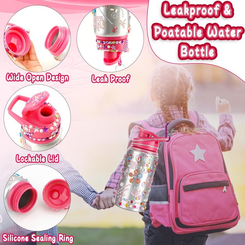 - Safe & Reliable Material: The Kids Water Bottle with Gem Art Stickers is made of high-quality stainless steel and aluminum, designed with food-grade sillicon sealing rings, non-toxic, odorless, BPA free and lightweight, very suitable for kids to use, nice girls toys 8-10