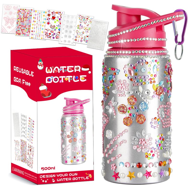 - Decorate Your Own Water Bottle Kit: This water bottle gem craft kit inckuding 1 pcs 500ml stainless steel water bottle, 7 sheet of rhinestone stickers, 1 pcs carabiner and 1 pcs operating instructions in a Christmas gift box,nough gem stickers for children to fully utilize their creative abilities, great choice as christmas stocking stuffers