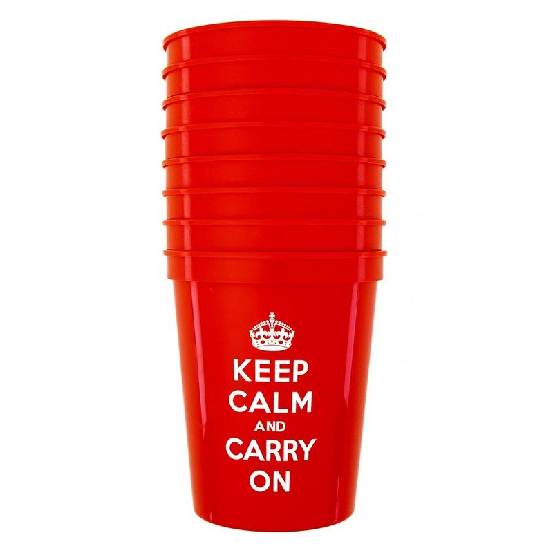 Decorative Things Red Plastic Cups Disposable Cups Party Cups Red Cups Plastic Keep Calm and Carry On Tumblers Pk 8 Reusable Plastic Drinking Glasses
