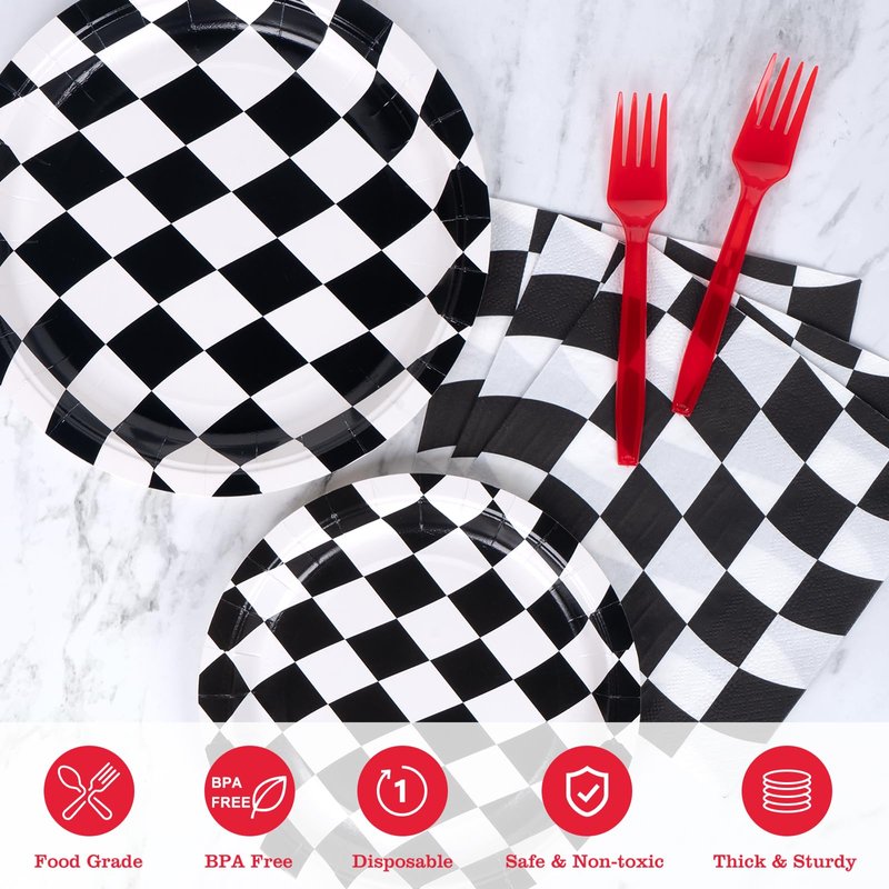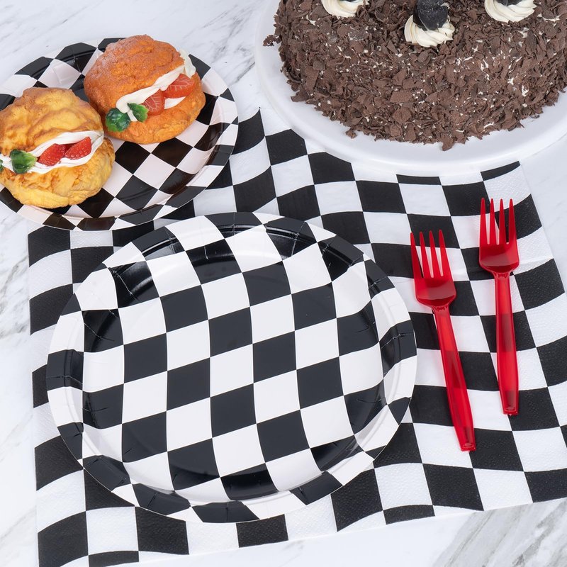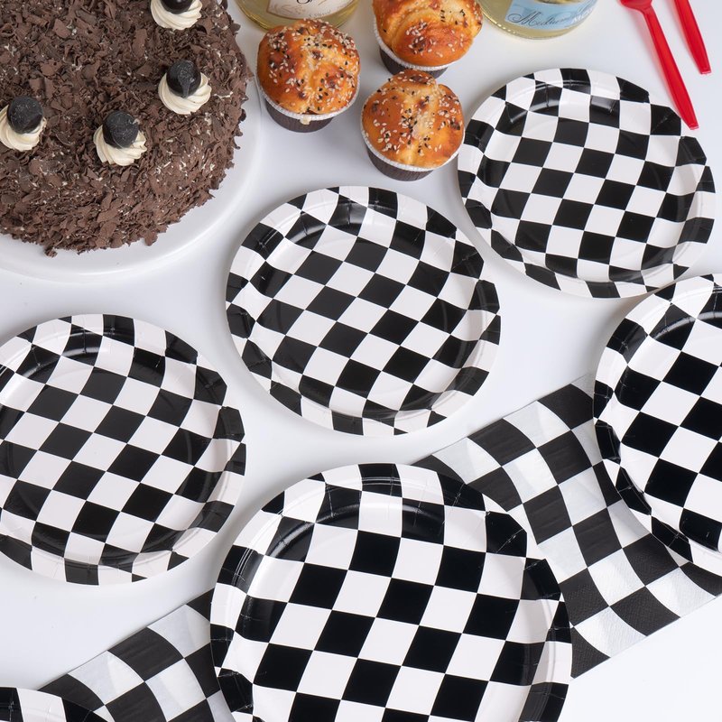 - 【Sturdy and Reliable】 Crafted from sturdy 350g paper, this set is built to last through the entire celebration. Whether you're hosting indoor or outdoor events, these checkered plates are up to the task