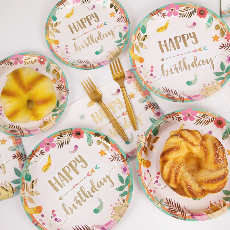 - 【Celebration In a Box】 The boho party plates and napkins sets are what you need to fill your floral themed party with a single birthday party
