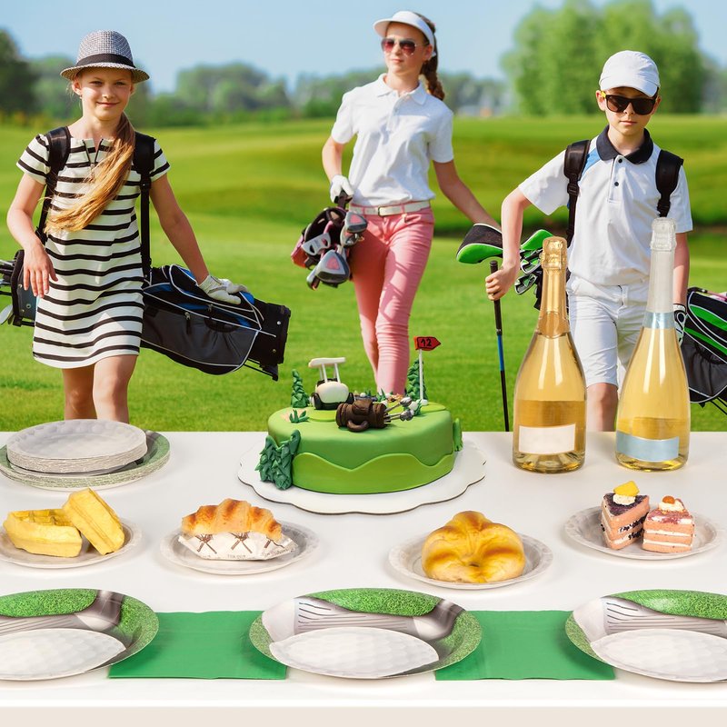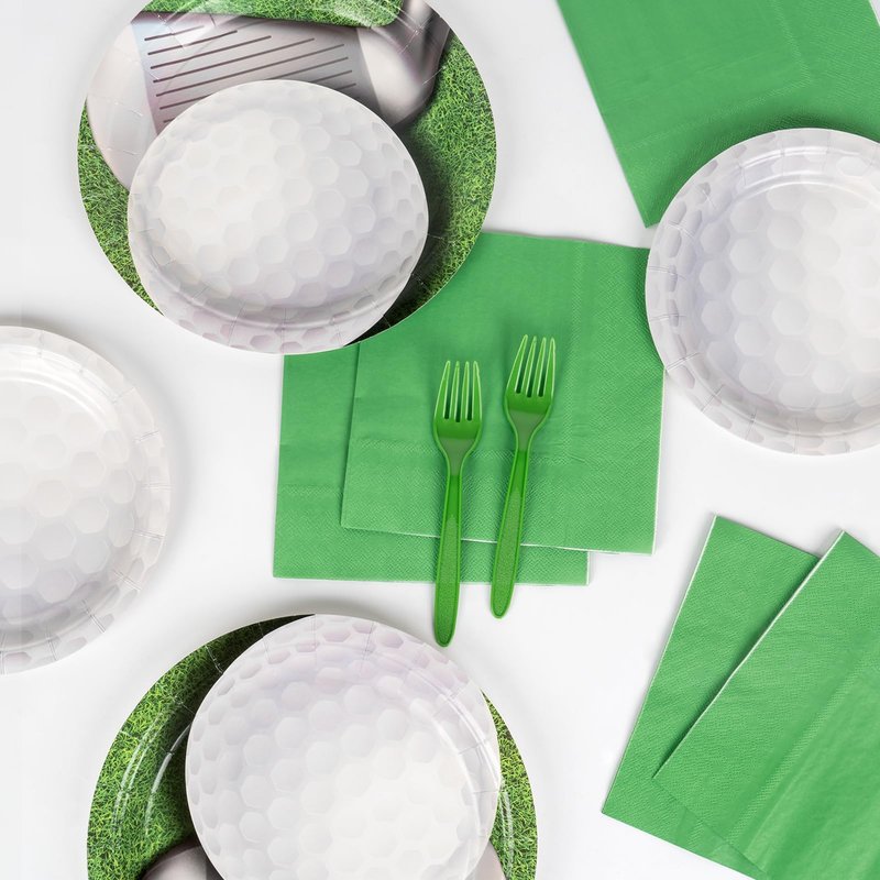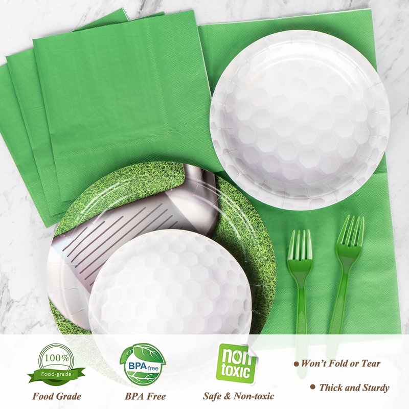 DECORLIFE Golf Party Supplies Serves 24, 9" and 7" Paper Plates, Napkins, Forks Included, for Golf Birthday Decoration