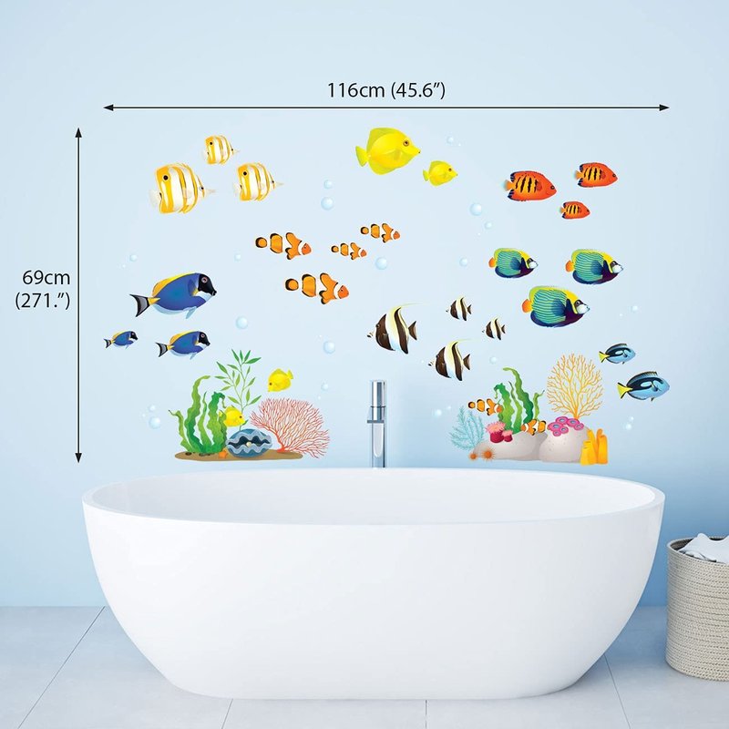 DECOWALL DWL-1811N Coral Reef Fish Kids Wall Stickers Wall Decals Peel and Stick Removable Wall Stickers for Kids Nursery Bedroom Living Room décor