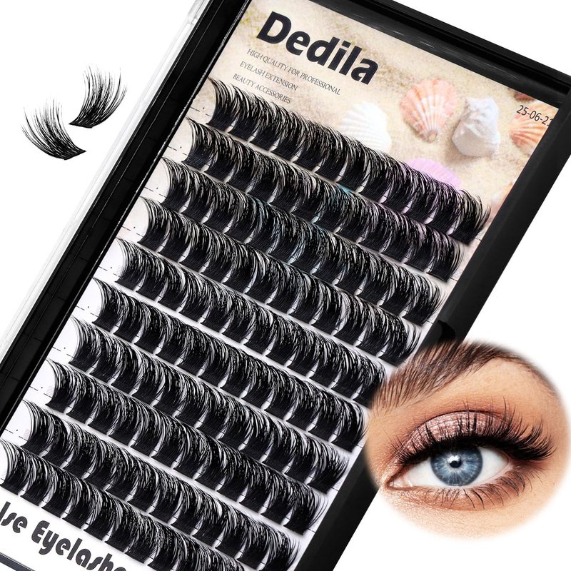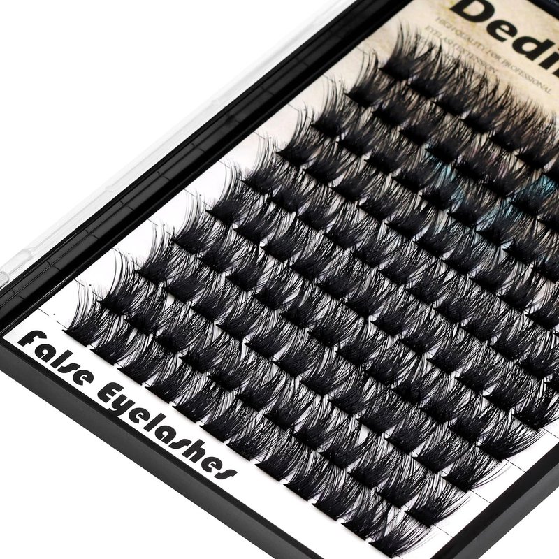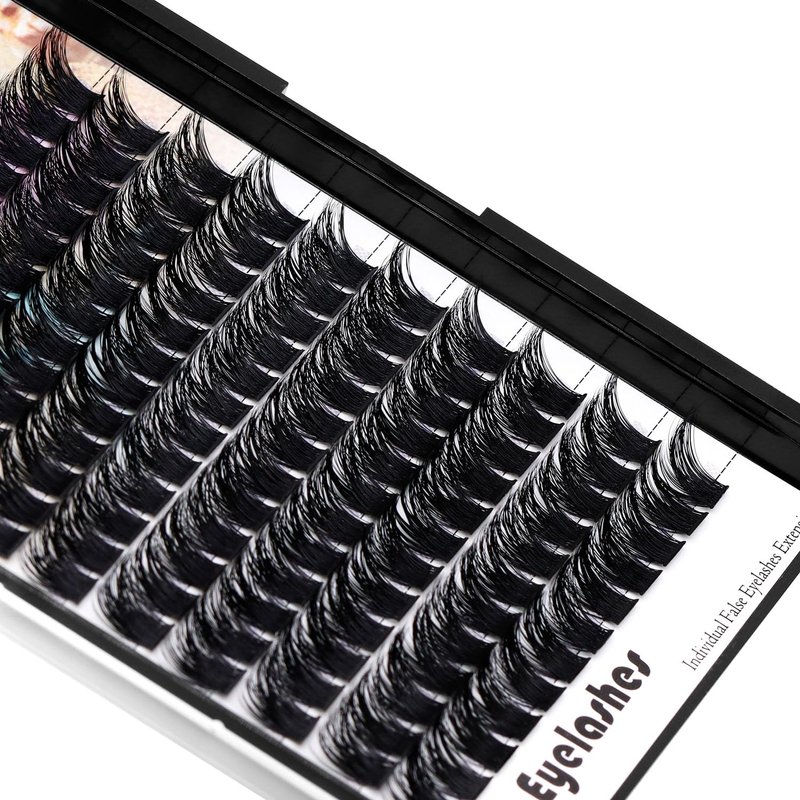 Dedila 120 Clusters Individual False Eyelashes Wide Stem D Curl Handmade Dramatic Black Soft and Light 5D Volume Eye Lashes Extensions Thick Base Women Girls Beauty Tools (16mm)