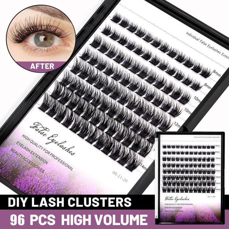 Dedila 96pcs Mixed 8-10-12-14mm/10-12-14-16mm Thick Base Dramatic Black Soft Cluster Individual False eyelashes Wide Stem 5D Volume Eye Lashes Extensions (8-10-12-14mm)