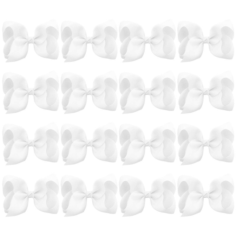 DEEKA 16 PCS 4" Hand-made Hair Bow Grosgrain Ribbon Solid Color Hair Bow Alligator Clips Hair Accessories for Little Teen Toddler Girls -White