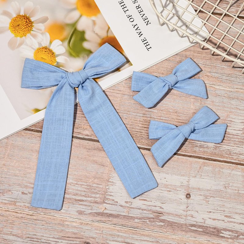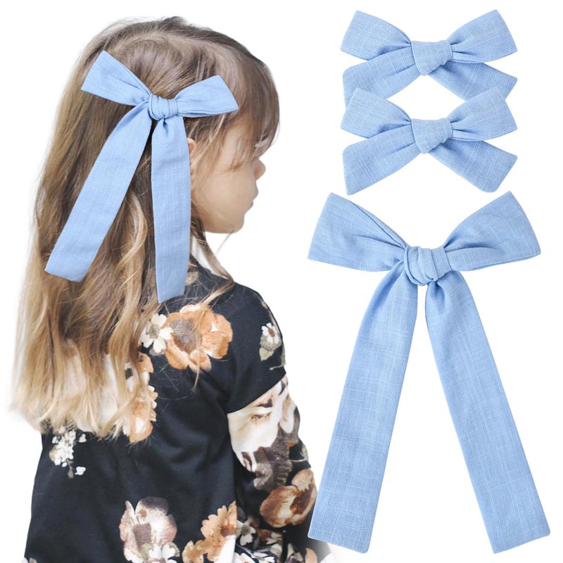 🎀DEEKA Cotton Linen Hair Bows Set - This hair accessory set is a collection of 3 pieces to complement any hairstyle. It includes 2 different sizes and shapes hair bows with alligator clips. This set provides an array of options for your toddler girls to express her unique style.DEEKA Cotton Linen Hair Bows Set - This hair accessory set is a collection of 3 pieces to complement any hairstyle. It includes 2 different sizes and shapes hair bows with alligator clips. This set provides an array of options for your toddler girls to express her unique style.