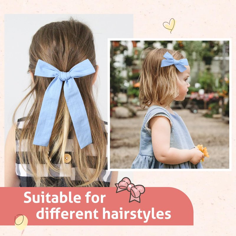 - 🎀Natural Fabric Bows - Our hair bows are made from all-natural cotton and linen materials, making them lightweight and perfect for keeping your little one cool in the warm weather. The cotton and linen materials are gentle on the skin and perfect for children with sensitive skin.