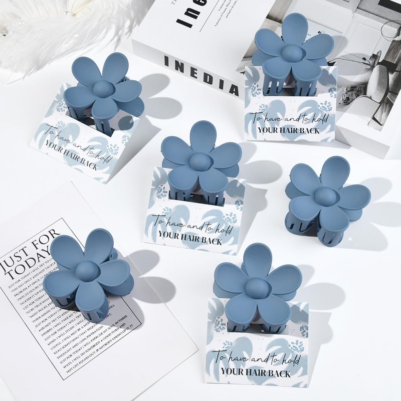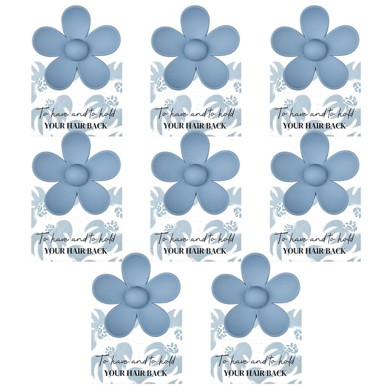 DEEKA Hair Clip, 8 Pack Flower Bridesmaid Hair Claw Clips with Floral Card, Bridal Party Gift for Bridesmaids Bachelorette Party Favors, Dusty Blue