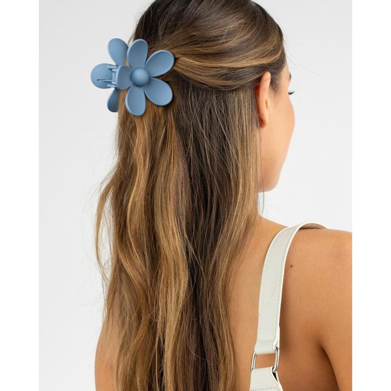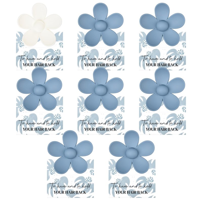 DEEKA Hair Clip, 8 Pack Flower Bridesmaid Hair Claw Clips with Floral Card, Bridal Party Gift for Bridesmaids Bachelorette Party Favors (White&Dusty Blue)