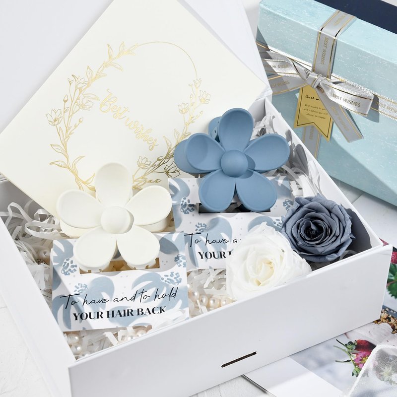- Bridesmaid Gift - Each set includes 8 beautifully crafted flower-shaped clips, measuring approximately 2.8 inches in length and width. These clips come packaged with 8 adorable paper cards, each featuring a 'to have & to hold your hair back' floral design, adding an extra touch of elegance to your bridesmaid gift boxes.