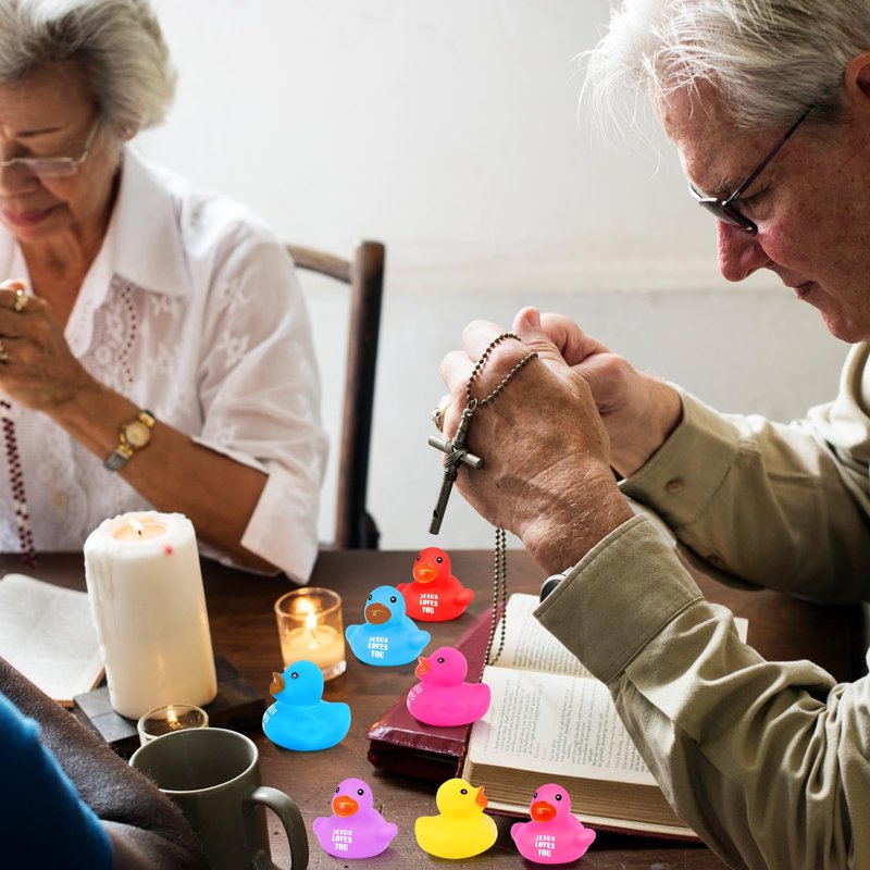 - Christian Themed Design: these vibrant Jesus rubber ducks showcase 5 main colors of red, yellow, blue, rose red, and purple; Printed with text [Jesus Love You], these rubber ducks truly bring out the message of love and faith, express faith to God and loyalty to Christian