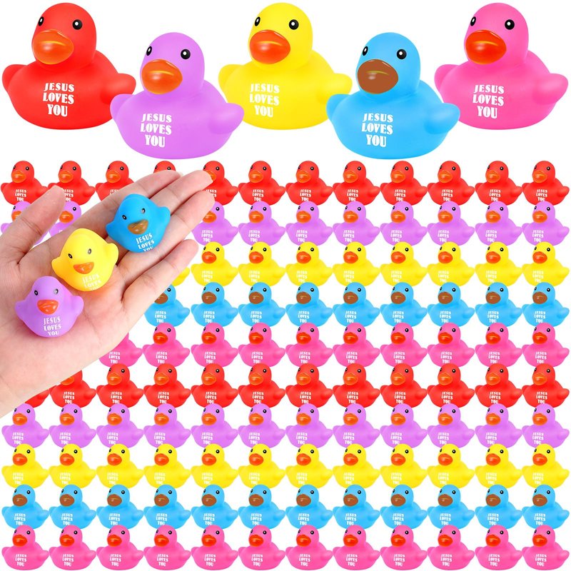 - Generous Quantity: every package includes 100 Jesus loves you rubber ducks, ideal for events, parties, and gifts; With a large quantity of these religious rubber ducks, you can surely spread the love of Jesus Christ effortlessly; Each Jesus small duck is approximately 1.4 inches/ 3.5 cm, making it easy to hold, these miniature rubber ducks will surely brighten up your room or party