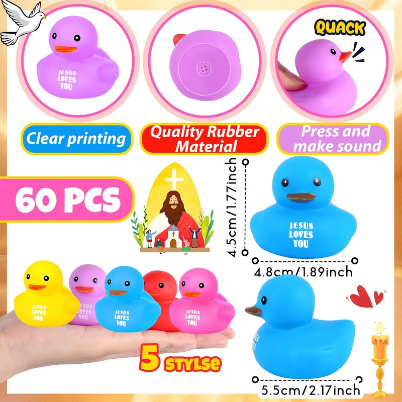 - Widely Applicable: the Christian themed rubber ducks bulk is a thoughtful and warm gift for Christian families or religious occasions, such as baptism, Easter, Christmas, church, Christian themed activities and more, representing a fun and playful way to express and share their faith