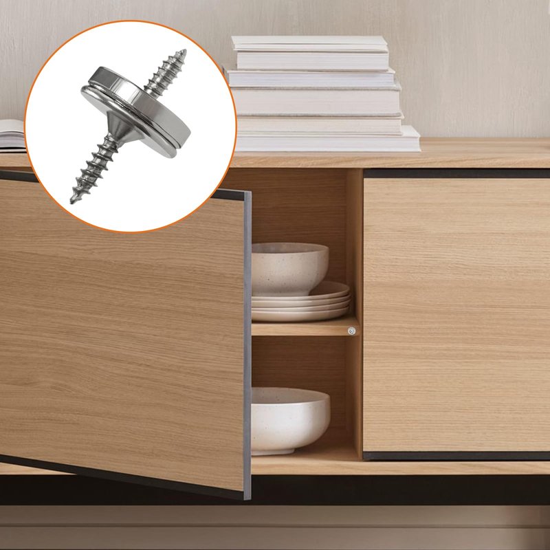 Magnetic catch prevents cabinet doors and drawers from opening on their own or not remaining shut.